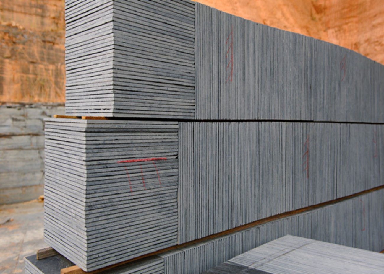 Os Lajões de Ardósia Matacão por suas características próprias, que não permitem a abertura em espessuras finas, são ideais para mesas, degraus e todos os produtos cuja espessura mínima seja de 2 cm.